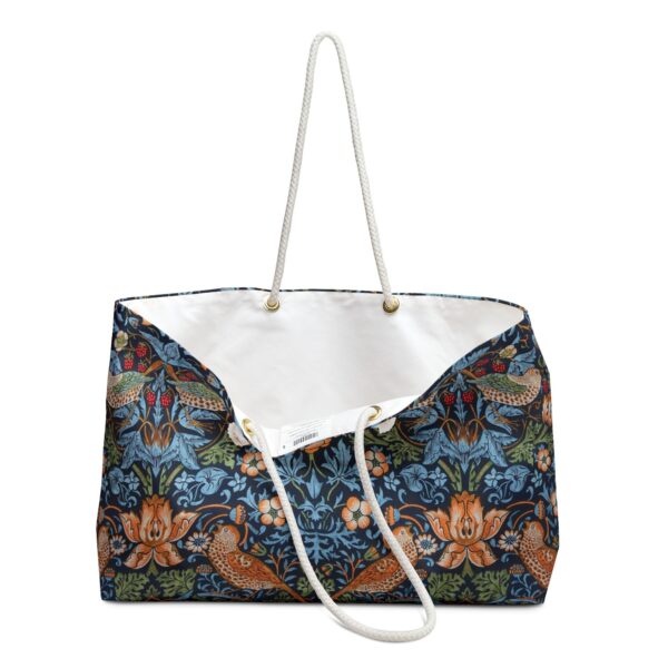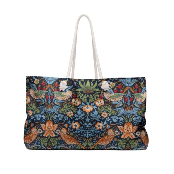 Whether you’re escaping for a weekend getaway, hitting the beach, or stowing your gear for a yoga class, this Weekender Bag blends functionality with flawless vintage style. Its vibrant and intricate floral design, inspired by Morris’s beloved ‘Strawberry Thief’, offers more than just storage—it invites you to dream, to explore, and to celebrate beauty in every form.