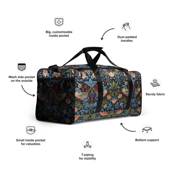William Morris “”Strawberry Thief”” Duffle Bag – Vintage-Inspired Travel Gym Bag – Spacious, Stylish & Durable Carry-All