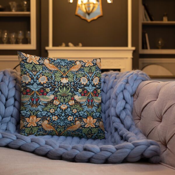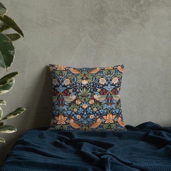 William Morris Throw Pillow – Vintage Strawberry Thief Premium Cushion with Insert – Art-Inspired Home Decor