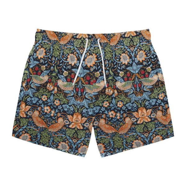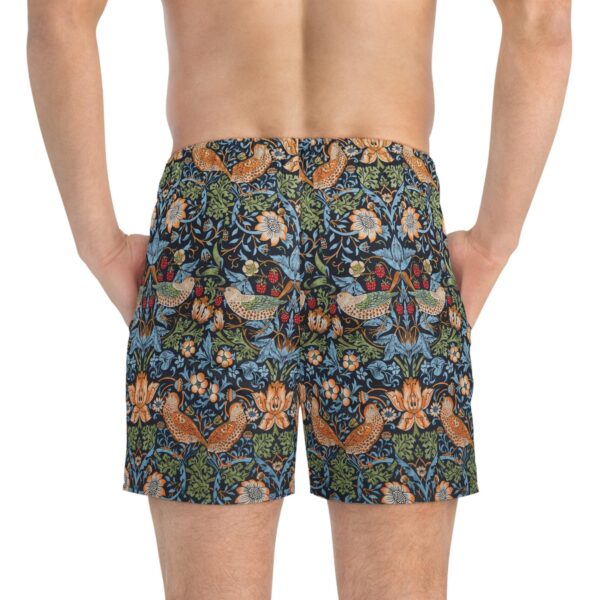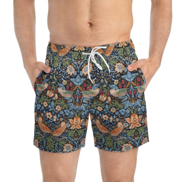 William Morris Vintage Floral Swim Trunks – Relaxed Beachwear, Summer Vacation Shorts, Poolside Fun, Garden Party, Strawberry Thief