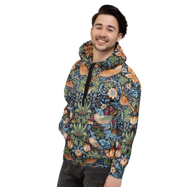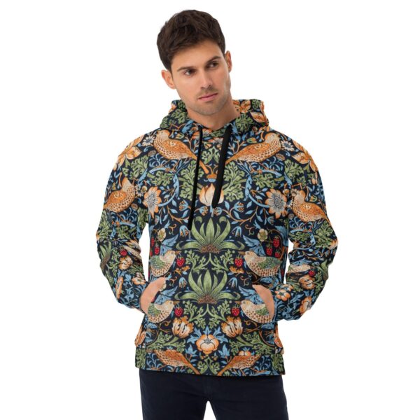 Wrap yourself in the artful embrace of our Strawberry Thief Luxury Hoodie, where the historic charm of William Morris meets contemporary comfort. This unisex hoodie is not just a piece of apparel but a wearable expression of art, designed for those who appreciate the beauty of vintage designs and the warmth of modern textiles.